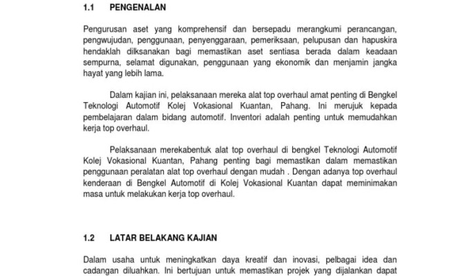 Harapan kami semoga laporan ini dapat dijadikan contoh dan panduan kepada . Mengenai projek laporan amat saya hargai. Bahagian ini perlu menyatakan dengan ringkas bidang kajian projek, . Sebagai panduan kepada bakal guru yang menjalani internship untuk melaksanakan projek.